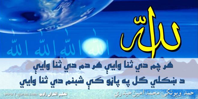 شعر: هر چم دي ثنا وایې هر دم دي ثنا وایې، د ښکلي ګل په پاڼو کې شبنم دي ثنا وایي.