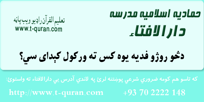 مخپاڼه / ستاسو شرعی پوښتنی او جوابونه / روژه / دڅو روژو فدیه یوه کس ته ورکول کېدای سي؟