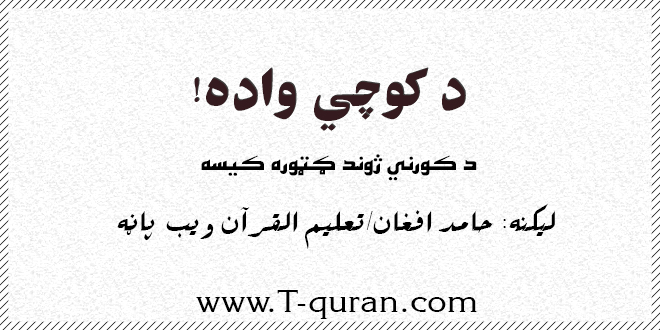 ادې خدای که داسې ښځه وینم چې زما و ستا ترمنځ میني ته درنښت ولرې او راسره ویې پالي، پریږده یې بيخي واده نه کوم، بوډۍ مور یې ټینګار کاوه چې زه ښه ښځه درته ګورم، ځوان کوچي مور ته کړه چې داسې ښځه به راته ګورې چې زما هره خبر مني، څه موده وروسته یې مور یوه ځوانه کونډه خوښه او زوی ته یې کوژده کړه.