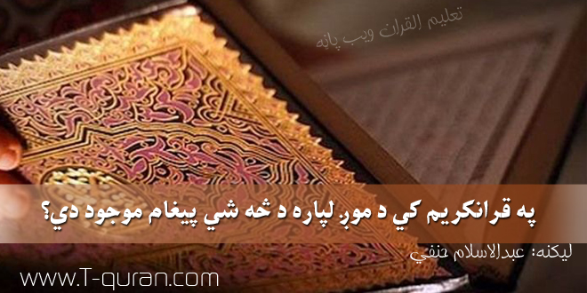 په قرانکریم کي د موږ لپاره د څه شي پیغام موجود دي؟