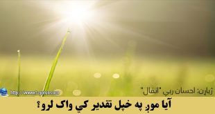 ليکوال: هارون يحيى ژباړن: احسان ربي “انفال” آيا موږ په خپل تقدير کي واک لرو؟ (تقدير او ساينس) د انساني تاريخ په اوږدو کي د تقدير په اړه خورا ډېر بحثونه سوي دي، خو دقيقه او کره خبره داده چي ټول کاينات او له تېر څخه بيا تر راتلونکي پوري …