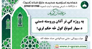 نور لوستلفتوا: په روژه کي تر آذان وروسته دستي د سهار لمونځ کول څه حکم لري؟