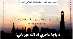 د پاچا عاجزي او د الله مهرباني(استسقاء) ژباړه: حامد افغان | تعلیم القرآن اسلامي راډیو د اندلس وتلی اموي خلیفه عبد الرحمن الناصر (مړ: ۳۵۰هـ= ۹۶۱م) رحمه الله نیمه پېړۍ (۳۰۰هـ/۳۵۰هـ) په اندلس واک چلولی، د ده د ښه سړیتوب کیسې تاریخ خوندي کړې دي، یوه زه درته رااخلم، چې …