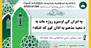 نور لوستلد روژې د رارسېدو په مناسبت د تعلیم القرآن راډیو او حمادیه مدرسې د مؤسس د مبارکۍ پيغام!(۱۴۴۲هـ ش)