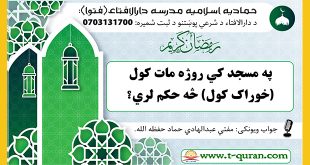 نور لوستلفتوا: په مسجد کي روژه مات کول (خوراک کول) څه حکم لري؟