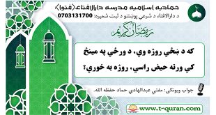 نور لوستلفتوا: که د ښځي روژه وي، د ورځي په مینځ کي ورته حیض راسي، روژه به خوري؟