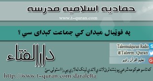 که غواړئ خپله شرعي پوښتنه د حماديې مدرسې دارالافتاء ته را واستوئ او د خپلې شرعي پوښتني جواب تر لاسه کړئ لاندي لینک کښېکاږئ دارالافتاء کولای سی لاندي فتوا باندي راسته کلیک وکړئ او خپل کمپیوټر کښې  يې ثبت کړی