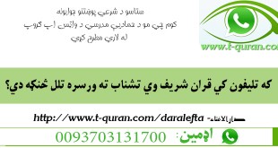 که تلیفون کې قرآن شریف وي تشناب ته ورسره تلل څنګه دي؟ مسلسله شمېره: ۰۴۶ جواب ویونکی: مفتي عبدالهادي حماد حفظه الله کښته کول