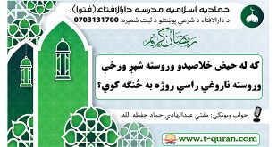نور لوستلفتوا: که له حیض خلاصیدو وروسته شپږ ورځې وروسته ناروغي راسي روژه به څنګه کوي؟