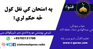 فتوا: په امتحان کي نقل کول څه حکم لري؟ سپتمبر 6, 2020 روا او ناروا, ستاسو شرعی پوښتنی او جوابونه څرگندونې بندې دي جواب ويونکی: مفتي عبدالهادي حماد زموږ پر یوټیوب چینل یې هم کتلای سی: نور لوستل