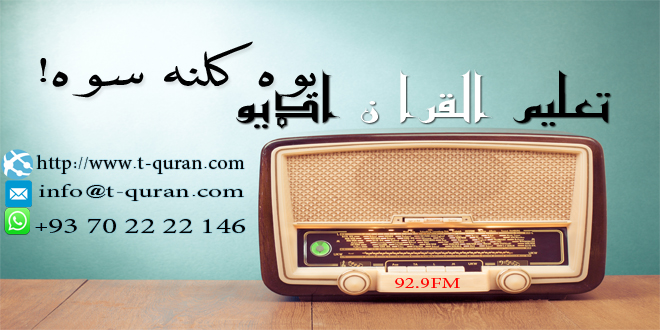 ١_ تعليم القران اسلامي راډ يو چي پر( ٩٢.٩ اف ايم)  باندي نشرات کوي چي اوس زموږ ږغ ورڅخه اورئ .