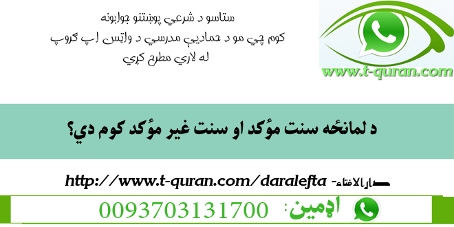 جواب ويونکی: مفتي عبدالهادي حماد. ستاسو د شرعي پوښتنو جوابونه کوم چي مو د حمادیه …