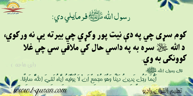 کوم سړی چي په دې نيت پور وکړي چي بيرته يې نه ورکوي، د الله (ج) سره به په داسي حال کي ملاقي سي چي غلا کوونکی به وي.